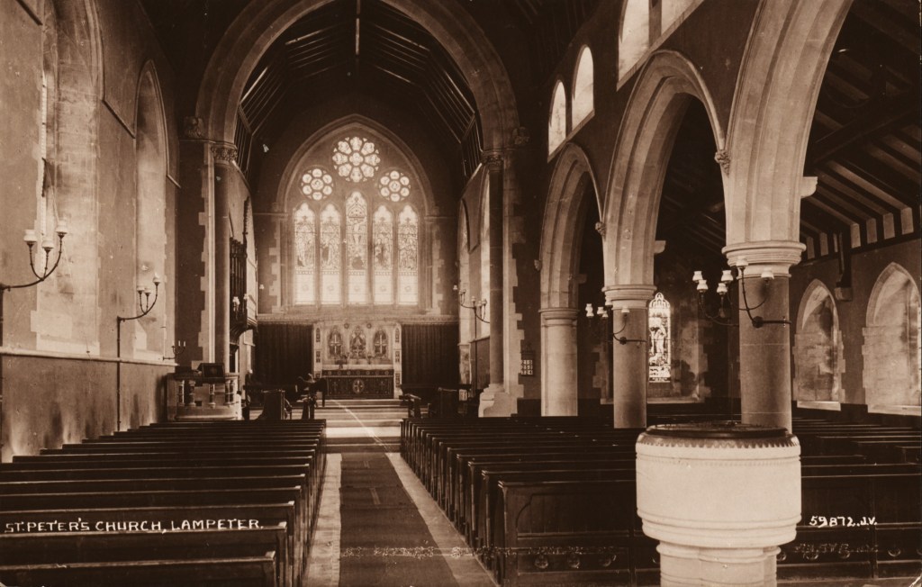 The interior of St Peter’s Church in Lampeter (undated postcard, author’s collection)
