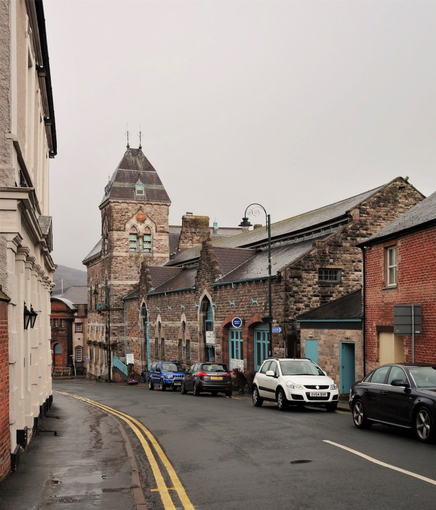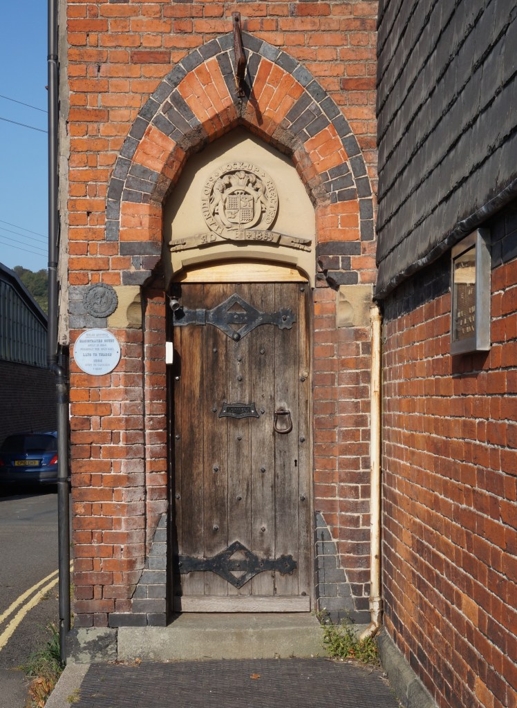 In 1864, the firm put up a magistrates’ court on High Street in Llanidloes, (formerly Montgomeryshire, now Powys). Here, the material is the red brick that predominates in the town enlivened with copious constructional polychromy, although most of the west elevation is slate-hung in accordance with a local tradition. The window and door jambs are intricately chamfered, sometimes in two orders. The pièce de résistance is the doorway leading to the courtroom at the rear of the building with a polygonal intrados to the arch and chunky wrought iron door furniture. Lloyd speculates that this commission was the work of Poundley alone, acting in his capacity of County Surveyor, but this wants confirmation.