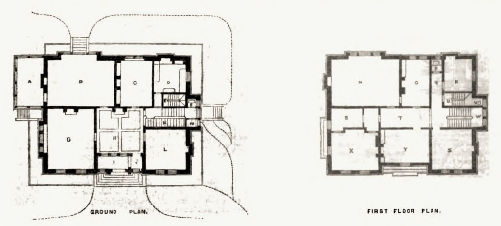 The design was classical in spirit, but slightly gauche in its treatment in that the receding central section was far narrower than the advancing wings to either side, which were not quite symmetrical in their fenestration. The house was constructed of red bricks with Ancaster stone dressings and The Builder reported that it incorporated sculpture ‘executed from the architect’s drawings, by Mr G. Seal of Walworth’, possibly a misnomer for John Wesley Seale (c. 1826-1885). Although map evidence shows that it stood in open country when first built, The Quarry was compactly modelled in the manner of a suburban mansion. Also in accordance with such models, the service wing (servants’ hall, kitchen, scullery, dairy, store rooms, etc) were located in the basement, taking advantage of the fall in land across the site to admit natural light. The Builder somewhat implausibly claimed that the decision had been made because of the absence of trees to screen a service wing. ‘To prevent the smell of cooking and heat from the kitchen proving annoying, the dining room being over the kitchen, a match-boarded false ceiling has been constructed, 10 in. below the ordinary one of plaster, and, by means of air-bricks in the external and cross walls, a current of air is maintained’. The Builder reported that The Quarry had cost £10,000. There was an entrance lodge a short distance away, overshadowed slightly comically by the main house. The Quarry was demolished for redevelopment at a date prior to 1930 when the Kippington Estate became an exclusive private housing estate.