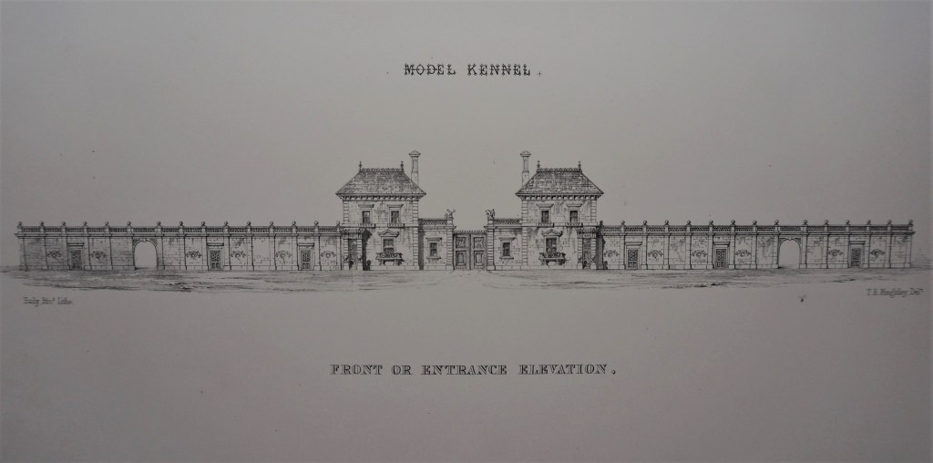 On 6th August 1852 Knightley married Ann Crober, the daughter of a licensed victualler, at St John’s Church, Paddington. It is likely that in the year of his marriage he also produced his first independent work, the Shoreditch New Almshouses on Brunswick Street. The following year, Knightley moved his office to Cannon Street. He was based initially at No. 25, moving at some point between 1864 and 1868 to No. 106, where remained until his death. In 1856, he became an Associate of the Royal Institute of British Architects, later progressing to the status of Fellow in 1860. Also in 1856, he was appointed District Surveyor to Hammersmith, holding the post until his resignation in 1904. In 1862, Knightley published Stable Architecture, his only known printed work, a folio volume handsomely illustrated with his own plans, elevations and perspective views of designs for model stables for coach horses, racing horses and kennels. It was advertised for sale in newspapers of the time and perhaps was intended as a bid for this particular market, but, if so, does not seem to have been successful in that regard. Initially, Knightley’s practice seems to have been fairly omnivorous, handling commissions for places of worship (primarily non-conformist – only two Anglican commissions are known, both of them alterations to existing buildings), almshouses, schools, warehouses and large private houses.