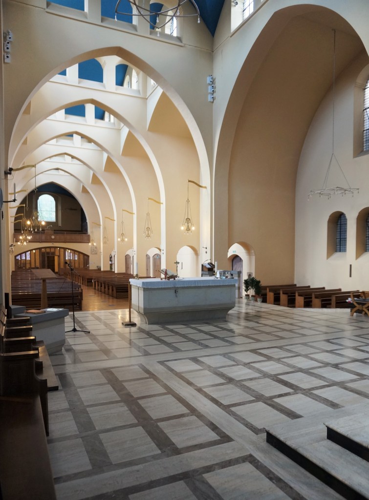 After Goodhart-Rendel’s death, his practice was taken over by Frank Broadbent (1909-1983), his former business partner. H. Lewis Curtis, his former assistant, oversaw the completion of projects such as Holy Trinity, Dockhead, ensuring that this was done in accordance with his intentions and succeeding admirably in imitating the master’s style when additional design work was required. Otherwise, most of what Goodhart-Rendel had represented died with him. His death occurred at a pivotal moment for British architecture: modernism was finally emerging triumphant from the stylistic pluralism that had persisted for much of the 20th century, which in the ecclesiastical sphere was marked by the victory of Basil Spence in the competition of 1951 for the new Coventry Cathedral. Though aspects of the planning of that building were decidedly conservative, the reforms of the following decade initiated by the Second Vatican Council in the Roman Catholic Church and the liturgical movement in the Church of England would propel ecclesiastical design towards greater innovation and more decisive breaks with historical precedent.