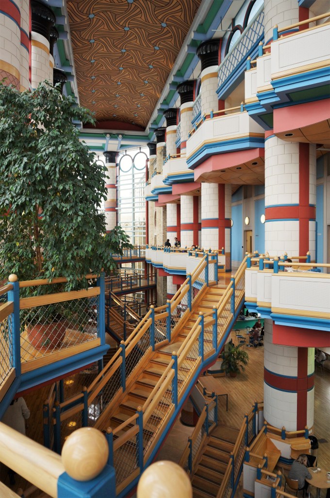 Victorian architecture might have benefited from critical reassessment and growing appreciation as the 20th century wore on, but that did not make neo-Victorianism a popular cause. Nor was it much buoyed by the reaction against modernism in the 1980s and campaign for a return to styles of the past led by Prince Charles, the effect of which was largely to reanimate the corpse of the Neo-Georgian movement. There are, however, some honourable exceptions. One is the later work of William Whitfield (1920-2019), who, at a speculative development for the Crown Commissioners in Pimlico, explored the possibility of reviving load-bearing masonry construction and in so doing produced an office block quite unlike any other with its overtones of the industrial architecture of the 19th century – inescapable, even if the architect himself denied that that had been the intention. At the Whitehall frontage of Richmond House of 1982-1984, he cleverly reinterpreted the forms of Tudor Gothic to give greater emphasis to a façade occupying an awkward site, as well as alluding to the lost Holbein Gate of Whitehall Palace, which had once stood nearby. In both designs he rejoiced in craftsmanship and the colour and texture of his materials to a degree quite exceptional for the date. The Queen’s Building at De Montfort University in Leicester by Short Ford Associates of 1991-1993 evidences not only a similar delight in constructional polychromy, but also combines it with the pointed arch, as well as exploiting functional demands – here, aimed at facilitating natural ventilation – to create expressive forms in a manner that would have thrilled the likes of Charles Henry Driver.