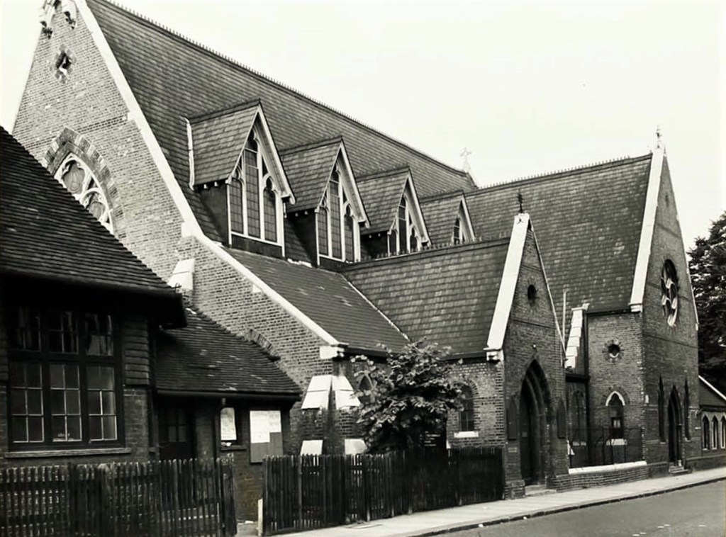 The church-building activity of Burdett-Coutts has been mentioned above. Though apparently discerning in her tastes, she worked with a range of architects and no distinct preferences emerge. In 1867, she finally decided to approach Darbishire, who was engaged to design St James’s on Moore Park Road in Fulham, at that point a rapidly growing new suburb. The foundation stone was laid on 20th June 1867 and work proceeded quickly – the church was consecrated in December of the same year. Darbishire appears to have had little interest in ecclesiastical architecture and it is perhaps this that accounts for the unusual and original design. Only the outer walls were built of brick. The piers of the arcade seem to have been of stone, but instead of supporting a masonry superstructure, they bore enormous collar-beam trusses. The roof structure was strengthened laterally by arched braces and longitudinally by a timber arcade, rising to a purlin which was met by the less steeply pitched lean-to roofs of the arcades. The form of the building, which suggests a more than passing acquaintance with medieval timber barns, was a resourceful way of economising on the amount of wet construction. The original configuration of the church is not entirely clear: the apsidal chancel was a later addition of 1874 by Ewan Christian, while the dormers – essential given the low aisle walls and consequently small windows – were evidently unequal to the task as designed and had to be enlarged in 1906. The church was badly damaged by fire in 1970 and subsequently demolished, but the former vicarage survives, albeit much altered.