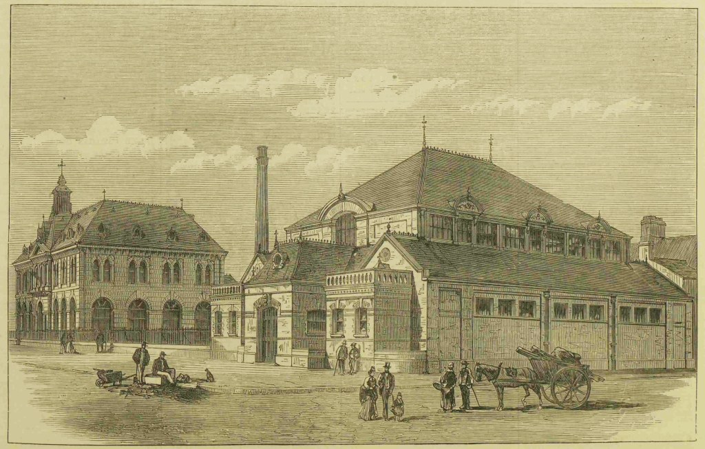 Two years later, Burdett-Coutts embarked on an even more ambitious scheme of urban improvement. Conditions in many of the food markets of the East End were thoroughly unhygienic and the situation was made worse by the extortionate rents changed for pitches by the owners, who took advantage of their monopoly, and police regulations aimed at driving costermongers off the streets. She resolved to establish a covered market where traders could ply their wares in properly organised, sanitary conditions for fair overheads. The early history of the venture is not quite clear, since although 1864 is usually given as the date of inception, it was not until 1866 that the necessary Act of Parliament was passed. However, in its issue of 27th October that same year, The Builder could report that ‘The market is now growing into shape’, which suggests that construction had begun a good deal earlier.