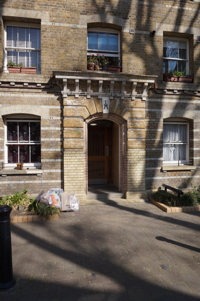 The Islington complex embodied a distinctive aesthetic, which marked a departure from what had been tried at Spitalfields. All lingering traces of Gothic were purged from the design of the exteriors. The elevations were symmetrically arranged with central entrance doorways and the fenestration was organised on a repetitive grid. It consisted throughout of segmental-headed openings – mostly glazed with three-over-three sash windows, although those lighting the laundry area on the top floor were fitted with casements and those in the narrower bays at each end of the block housing the shared toilets and lavatories were glazed with single-light sashes. Stock brick was used for the walling with dressings and banding of white Suffolks, and the slate roof was set at a shallow pitch with unbroken eaves and ridge lines. One might speak of astylar classicism and certainly the sparing ornamental and decorative touches drew on the architectural language of antiquity – witness the doorcases breaking forward from the wall surface, the modillion eaves cornice and the more closely spaced banding at ground and first floor level paraphrasing rustication. As Davidovici points out, while one branch of the architectural genealogy of this type can be traced back to the Renaissance palazzo (and indeed she records that there was surprise and even anxiety among contemporary commentators that housing for the poor should be palatial in scale, if not in opulence), the rest stem from a very different source – what came to be dubbed ‘The Functional Tradition’ by post-war architectural journalists.