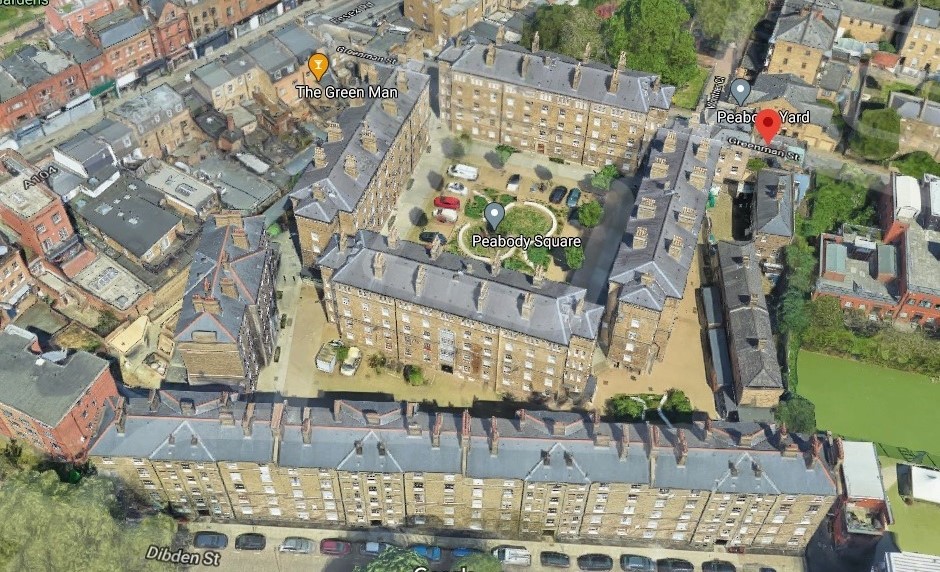 What became the ‘house style’ of the Peabody Trust was established with its next project on Greenman Street in Islington, completed in 1865. As with Columbia Square, a site was deliberately chosen in a notorious slum area, in this instance a rookery called Ward’s Place, to advertise the programme of social improvement. Four five-storey blocks were positioned around a square courtyard with a much longer fifth block set at an angle to the main quadrangle fronting Dibden Street, which forms the southern boundary of the site. A shorter sixth block occupies part of the gap between the two, thereby enclosing a second, wedge-shaped courtyard. All this gives the complex a fortress-like aspect, which is perhaps not entirely coincidental. Davidovici notes than it was gated and shut at night – Peabody’s industrious poor were to be segregated from the less deserving indolent poor who still inhabited the neighbouring slums. In a paper read at the Architectural Association entitled On the Construction of Dwellings for the Poor, Darbishire stated explicitly that it was not envisaged that the improved living conditions of inhabitants of the Peabody housing would have a salutary effect on the wider populace, claiming that all experiments aimed at achieving such a result had failed. Indeed, it was even feared that the disparity in living standards might breed resentment.