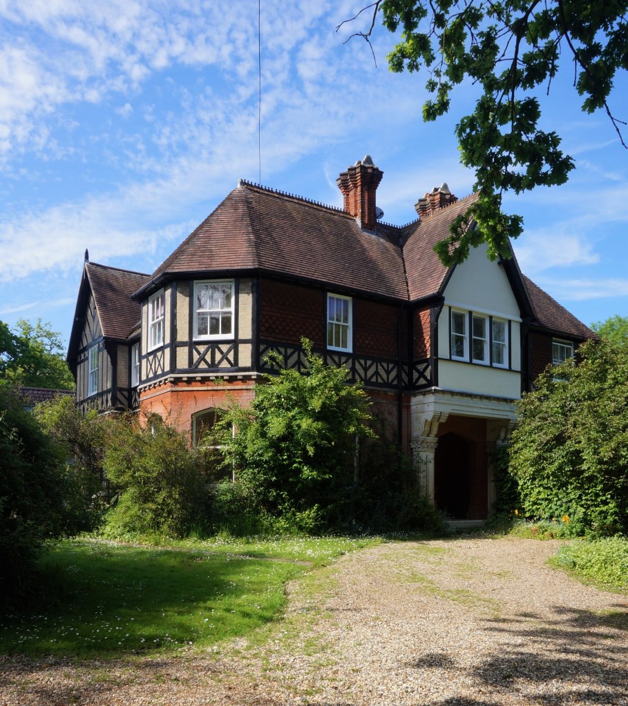 Clock Cottages in the centre of Eastleach Turville in Gloucestershire of 1875 is a charming group of almshouses commissioned by Sir Thomas Bazley (1797-1885), a Lancashire cotton master, philanthropist and social reformer, who not long prior to that had acquired the Hatherop Estate, where he settled in his final years. A self-consciously picturesque composition that pays homage to the Cotswolds vernacular, the delightful clock tower with its uppermost stage and spire twisted round by 45 degrees forms a very effective accent in the middle of the village. Grundisburgh Rectory in east Suffolk of 1882 is less successful – an ill-composed mish-mash of High Victorian Gothic with various cod-vernacular features (none of them indigenous to the area) such as tile-hanging and dummy half-timbering. It is a cut above the rectories usually supplied by cost-conscious Diocesan authorities and suggests that the client, the Rev’d Henry Turnor, may have invested private means. But by the standards of the progressive domestic architecture emerging at the time, it must have appeared rather ponderous and gauche, and again it is unclear why Darbishire should have approached. How long Darbishire remained in practice after the big Peabody building campaign of the mid-1880s is currently a mystery, like all the other details of his later years. He died in Sevenoaks in Kent – whether this was a chance circumstances or he had settled there is unknown.