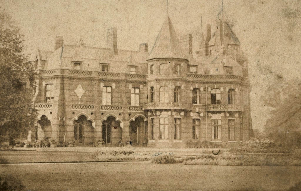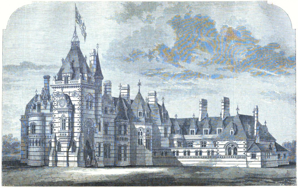 Teulon had been engaged to work on Elvetham by Frederick Gough-Calthorpe (1790-1868) the 4th Lord Calthorpe, whose family owned the Edgbaston Estate. Starting in the late 18th century, they exploited the demand generated by Birmingham’s rapid expansion as an industrial and commercial centre by selling building leases for its development as a middle-class suburb. The family had acquired Elvetham through marriage in the 1700s, but leased the estate to a succession of occupiers from the end of the 18th century, when it ceased to reside there. In the 1800s, one of these – Lieutenant General Gwynne, a veteran of the Peninsula Wars – demolished a large, substantially Elizabethan house and replaced it with a relatively modest classical villa. The 4th Lord Calthorpe left Edgbaston to take up residence at Elvetham and it was income from the ground rents that allowed him to rebuild the house on such an imposing scale. The choice of architect seems to have fallen on Teulon because he had already commissioned from him a number of buildings for the Edgbaston Estate, notably the church of St James (1851-1852), as well as modifications to Perry Hall in Staffordshire, another Calthorpe property.