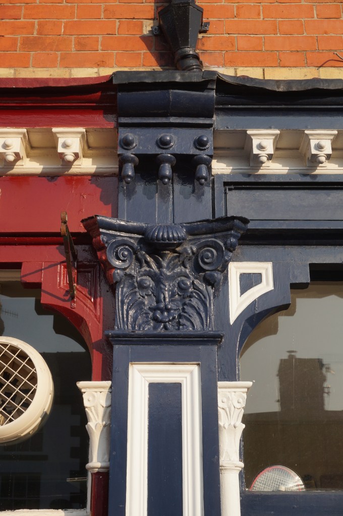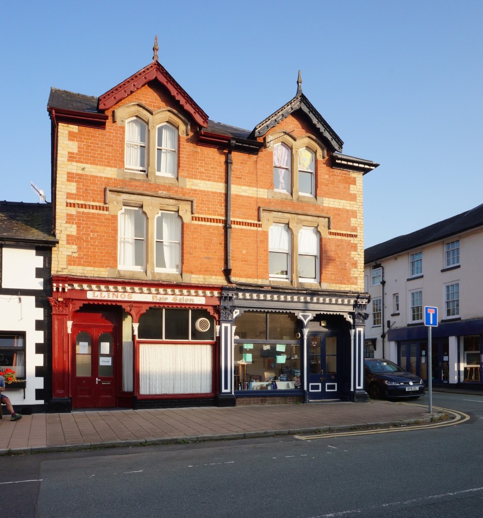 The first of these projects was a complex of civic buildings on Market Street in Ruthin, Denbighshire – a combined town hall, market hall and fire station. It postdates by only a few years the similar complex by R.J. Withers in Cardigan discussed in a recent post, and the comparison is instructive. Like it, the building is deftly fitted into an awkward sloping site. The main administrative block is located at the lower end, taking advantage of the change in height of the terrain to fit in a monumental elevation and dramatic return to a side street. In the Ruskinian line, the ground floor consists of a boldly expressed arcade resting on sumptuously carved capitals, whose tympana are filled alternately with plate tracery and carved reliefs, executed by Edward Griffith of Chester (dates unknown). A bell tower terminating in a hipped mansard roof marks the junction with the market hall, with cart entrances consisting of curious polygonal arches under crow-stepped transverse gables. Internally, it is spanned by arch-braced trusses of bolted timber construction, reinforced by wrought iron tension rods and supporting a clerestory. Beyond is the fire station with two elliptical arches dressed in brown sandstone for the vehicle entrances. A favourite characteristic of the firm’s style emerges here – play in colour and texture, with the rock facing used for most of the wall surfaces contrasting with the smooth ashlar of the dressings executed in a lighter stone. Note also the prominent use of wrought and cast iron detail, extending even to the finials of the tiny dormers of the bell tower.