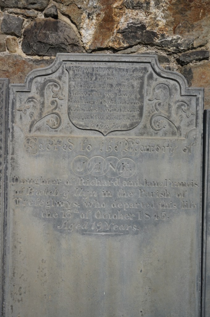 Firstly, in 1866, the church of St Mary was rebuilt on the site of a 17th century predecessor. It is a variation on the theme set by Llanbedr Dyffryn Clwyd – again a two-cell structure with a short chancel terminating in a polygonal apse and an east window breaking through the eaves cornice into a dormer. Again, there is rock facing, striped arch heads, plate tracery and banding to the slate roof. Though the tower is more massive, there is the same love of geometric invention in the handling of its transformation into an octagonal spire, whose upward progression is interrupted by a ring of colonettes supporting trabeated openings – almost as though the top had been sliced off and this stage inserted as an afterthought. The tympanum of the main entrance is occupied by a relief of the Ascension, based on one discovered during investigations of the abbey ruins.